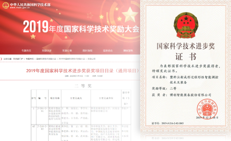 博創《塑料注射成形過程形性智能調控技術及裝備》項目榮獲2019年度國家科學技術進步獎二等獎