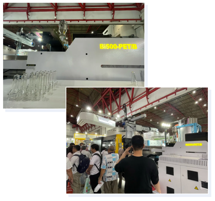博創(chuàng)展位號(hào)A1-2102其中,以Bi500-PET/B為主體的瓶胚智能包裝生產(chǎn)線,生產(chǎn)14克的瓶胚,一出64,每模僅需要12秒,獲得客戶的高度認(rèn)可,市場需求火熱。