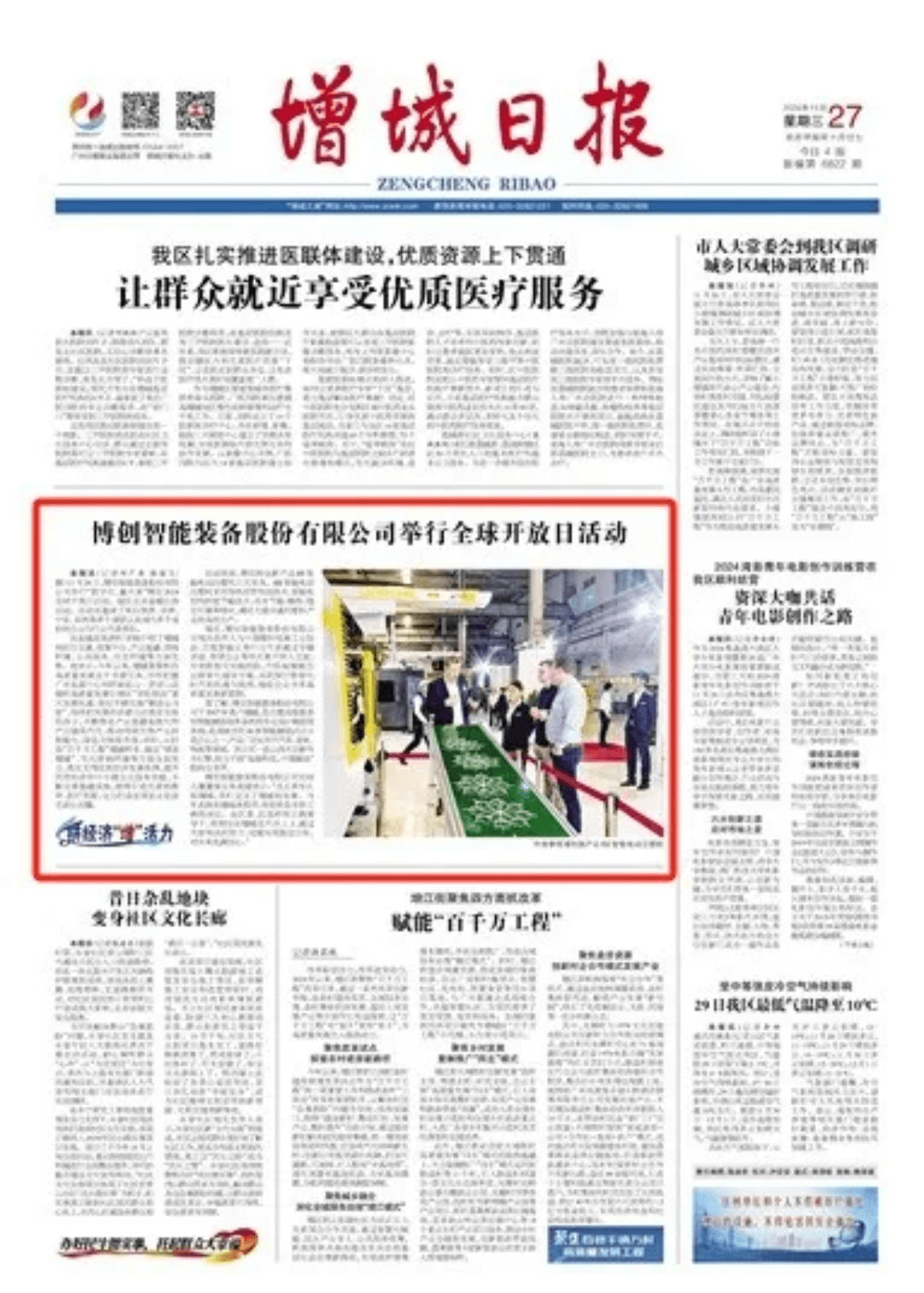據了解,博創智能裝備股份有限公司于2007年落戶增城,是注塑成型裝備和智能制造服務系統的專業設計制造服務商,是國家首批46家智能制造試點示范企業之一,產品廣泛應用于汽車、家電、物流等領域。該公司一直以技術創新作為引擎,致力于將“高端科技,中國制造”推向全世界。