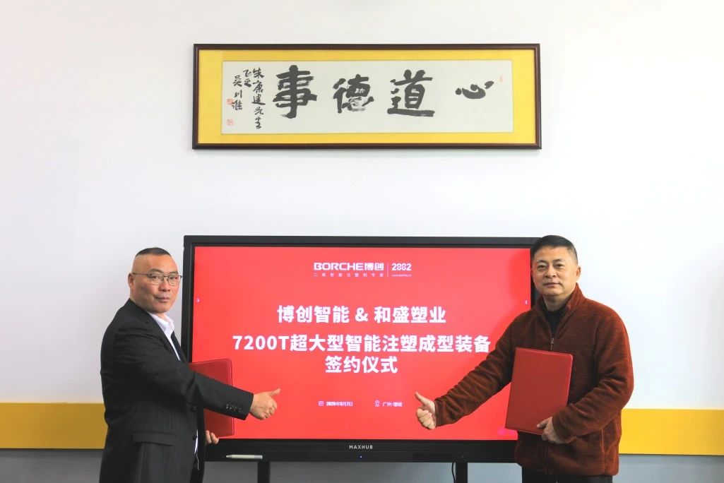 如今,博創再次以創新實力引領行業,7200噸超大型二板智能注塑成型裝備的簽約,標志著博創在智能裝備領域的又一次飛躍!